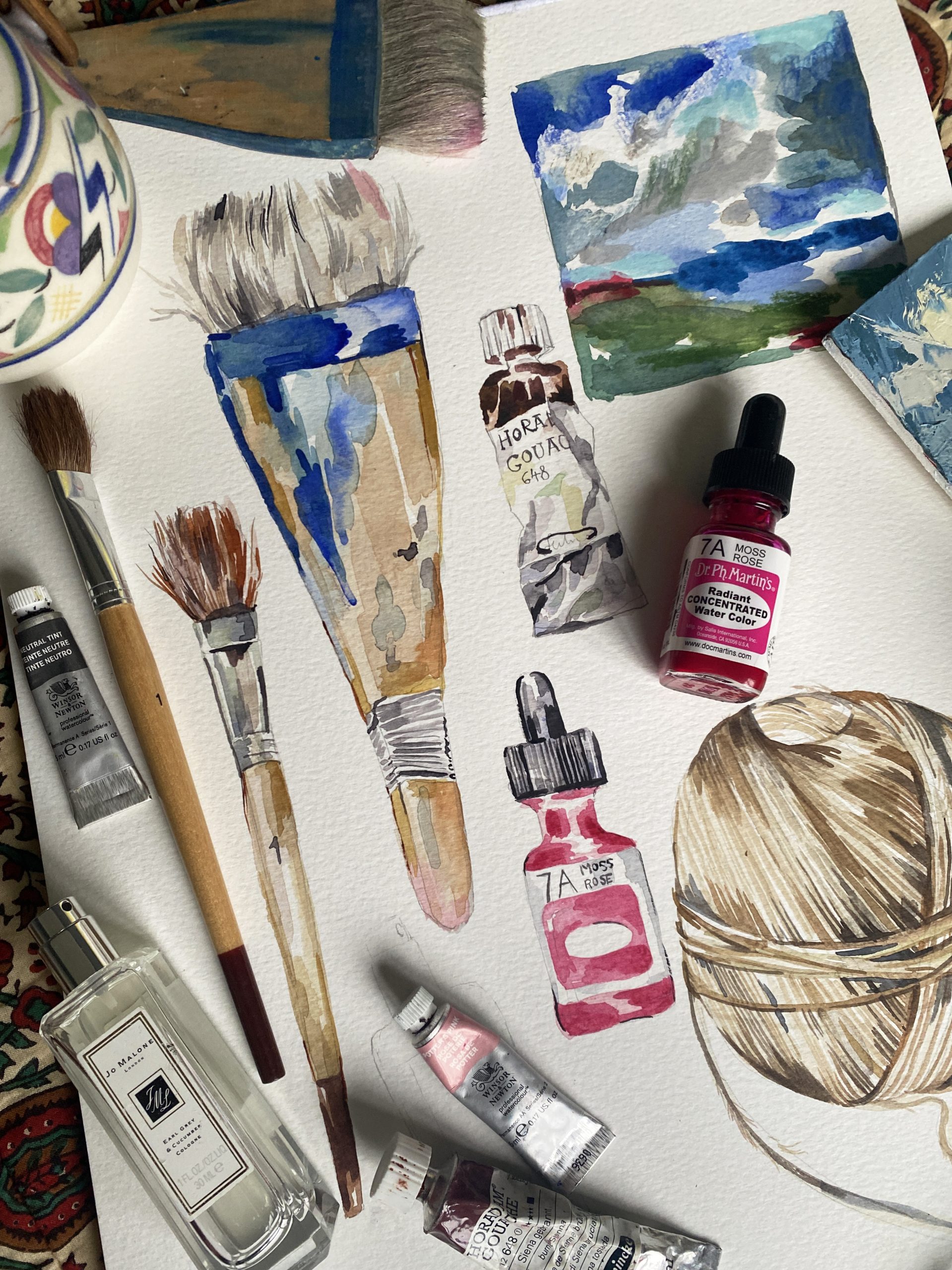 A good drawing is the framework for everything I paint. This week we will try various drawing exercises taking the beauty from everyday items as inspiration. Drawing with unfamiliar materials and looking closely at the textures and forms of old paint tubes, shells, vintage pots etc.