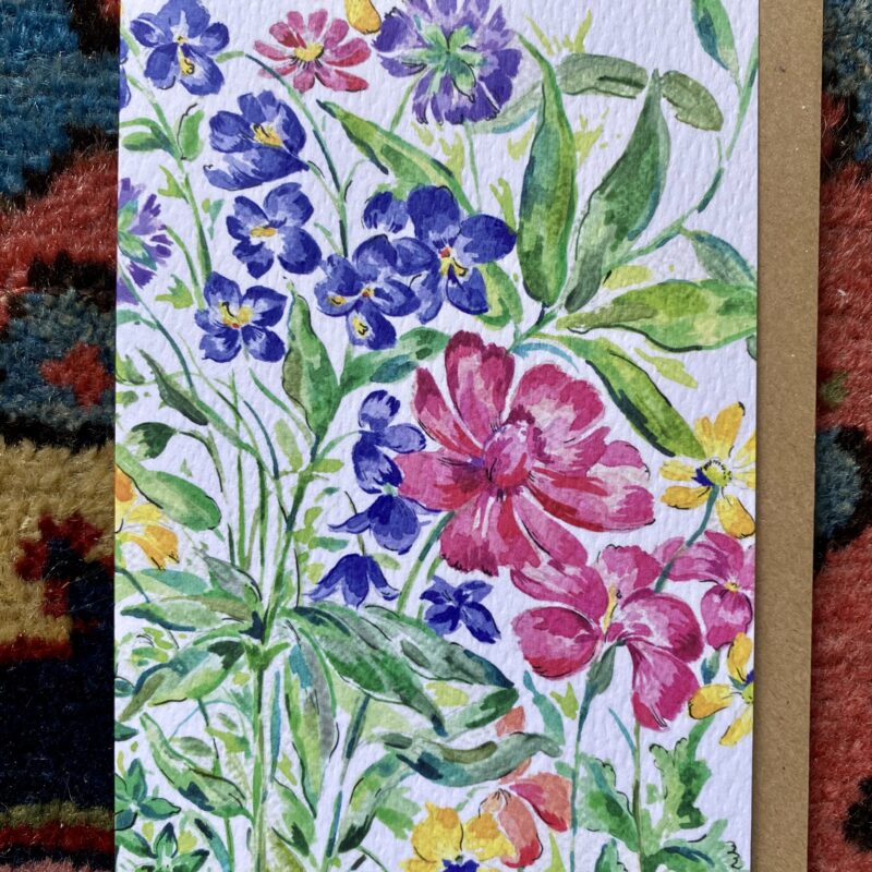 My greetings cards are blank inside so you are free to write what you wish! They are accompanied by a brown kraft envelope.