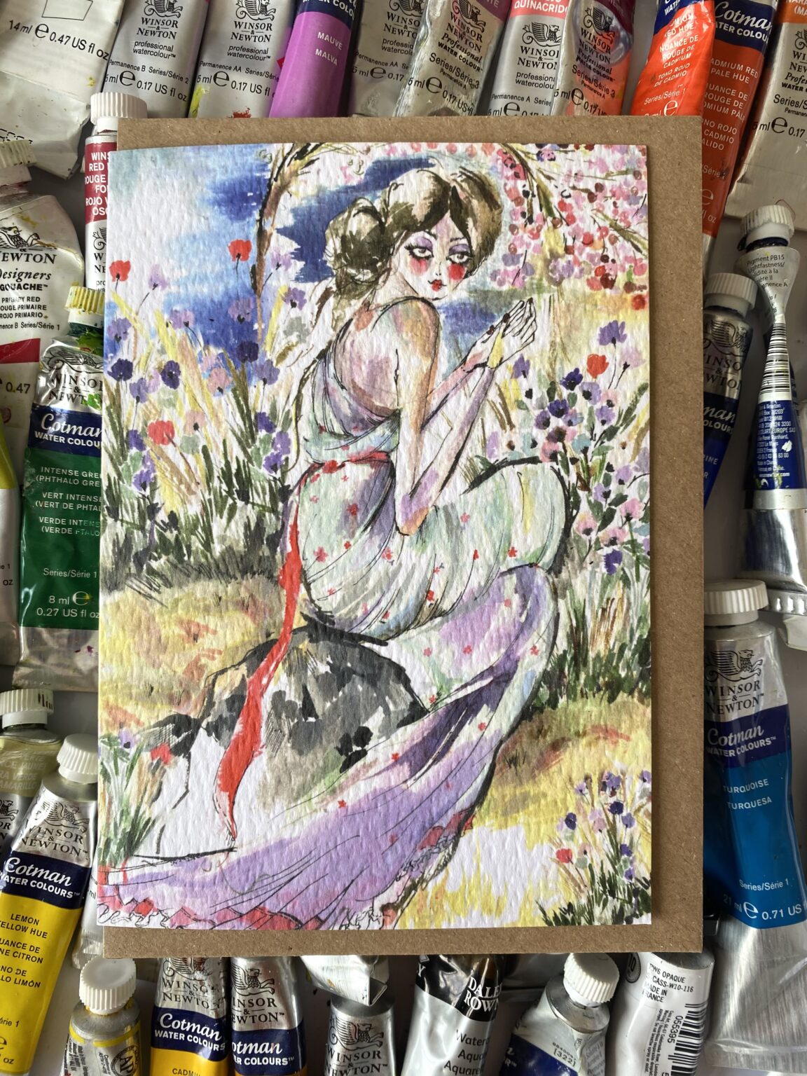 Ariadne is delicate, beautifully illustrated in watercolours, this whimsical printed card is perfect for children and adults alike.