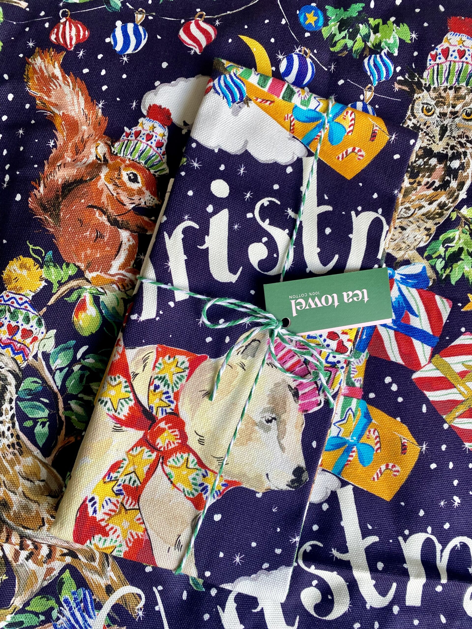 This vibrant Christmas theme Tea Towel features a host my festive characters in this wonderfully wintery scene! It’s beautifully printed from my original watercolour paintings.