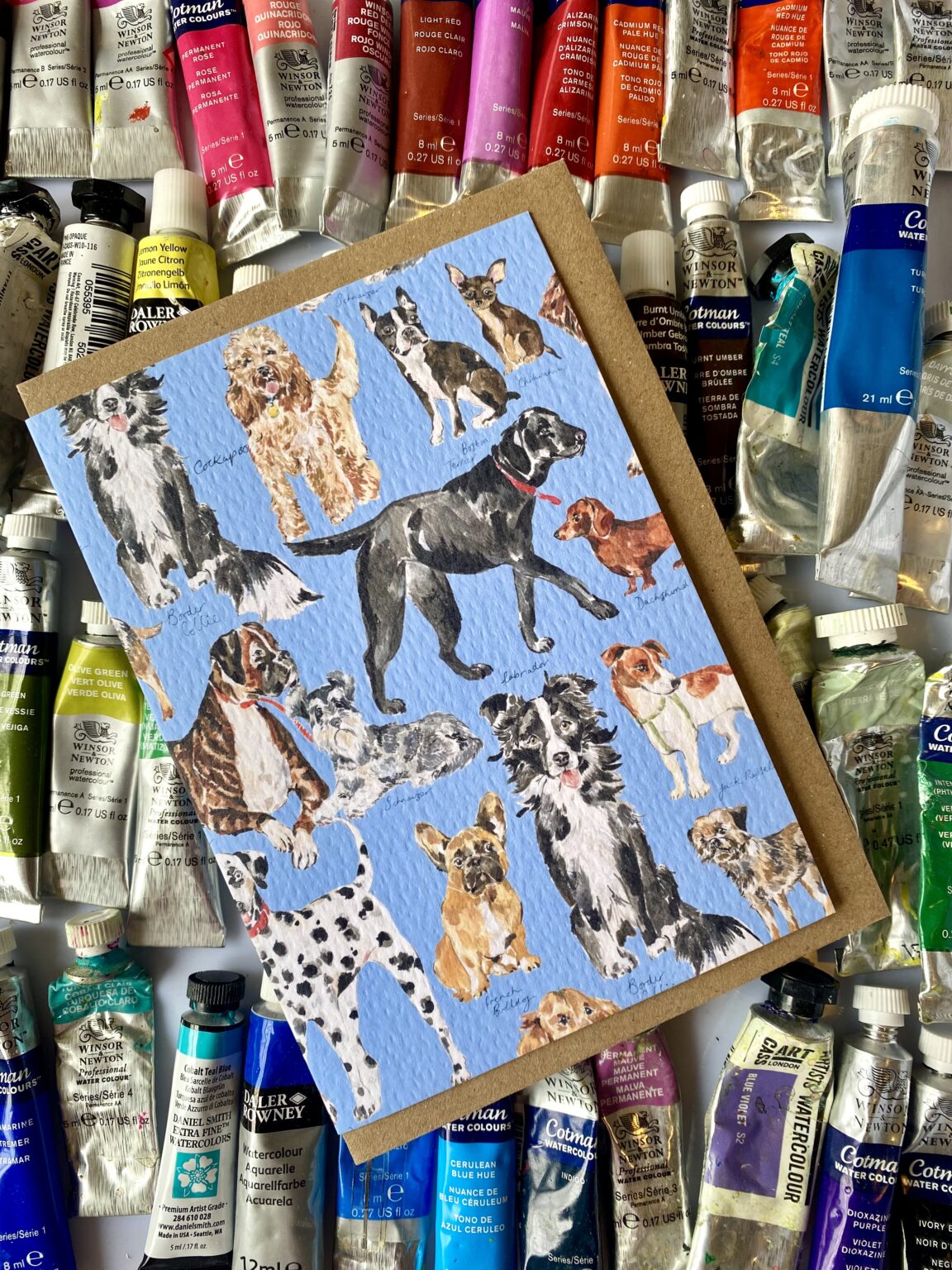 Beautifully illustrated in watercolours, this fun printed card is perfect for dog lovers of any age!