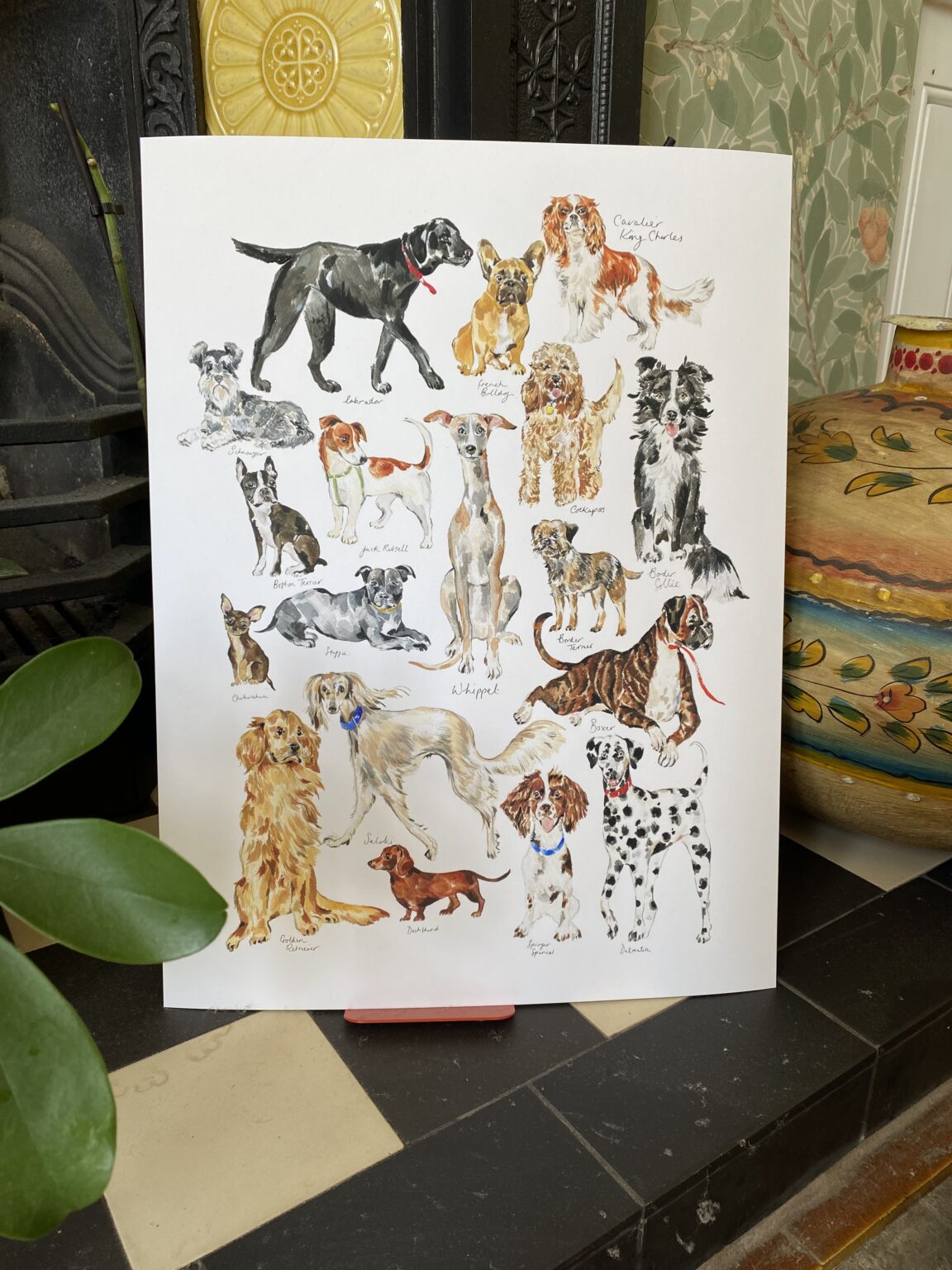 Add some fun to your walls with my Dog print. I adore painting animals, especially dogs and try to capture their individual characters through my illustrations.